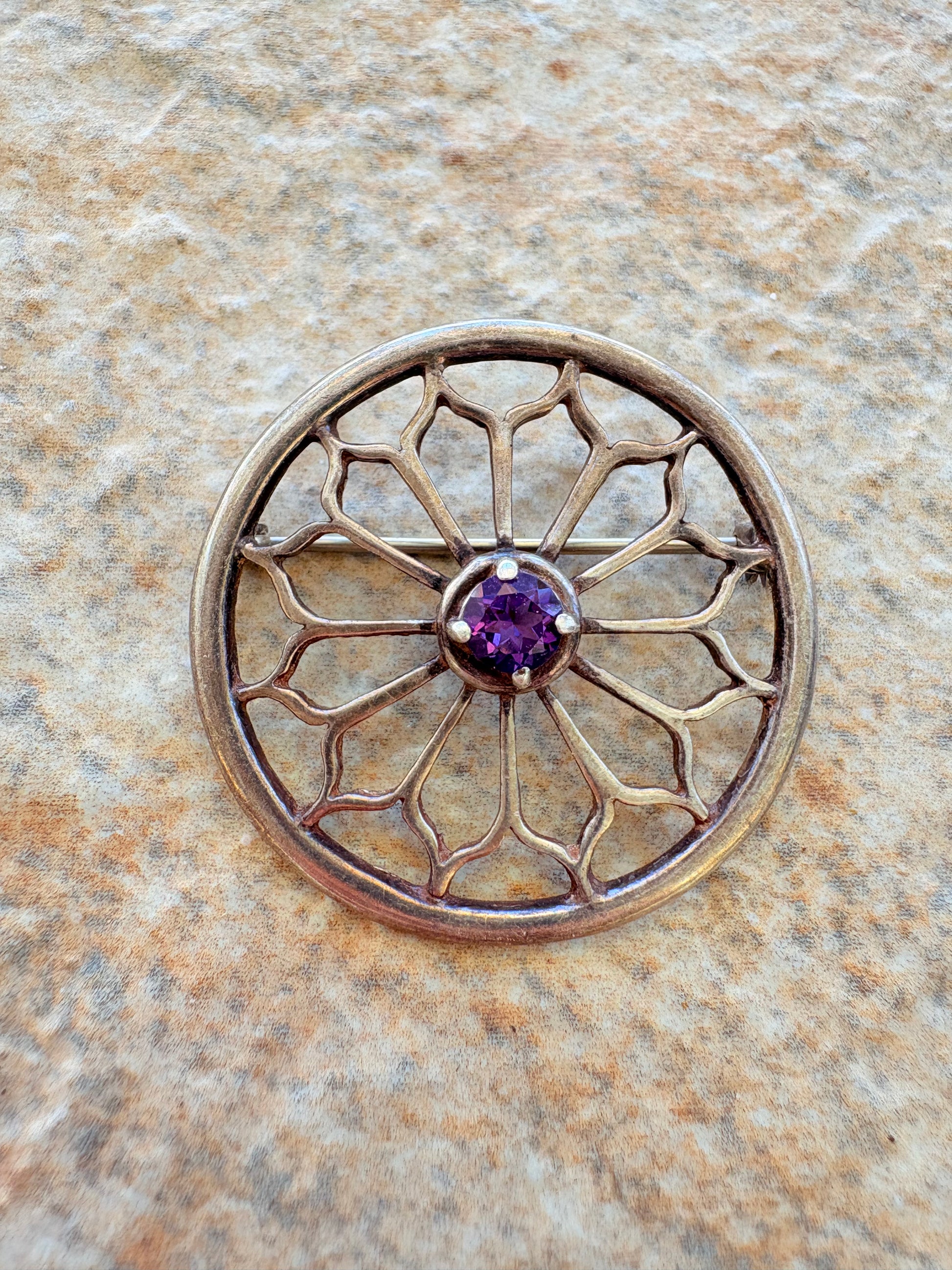 Antique Sterling Silver Brooch with Amethyst Center — Art Nouveau Web Design