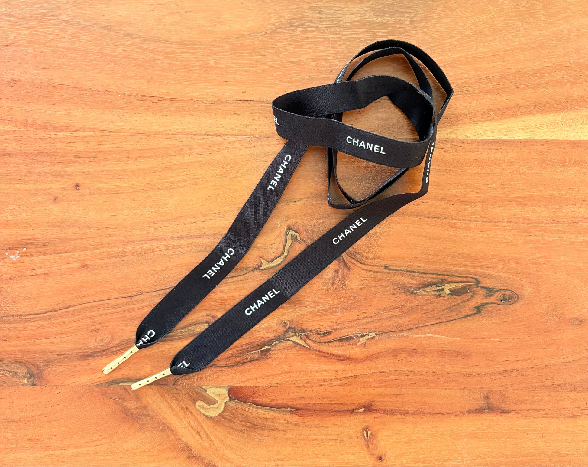Authentic Black Chanel Ribbon with Metal Tips – Upcycled Luxury Shoelaces, Hoodie Strings, or Hair Ribbon