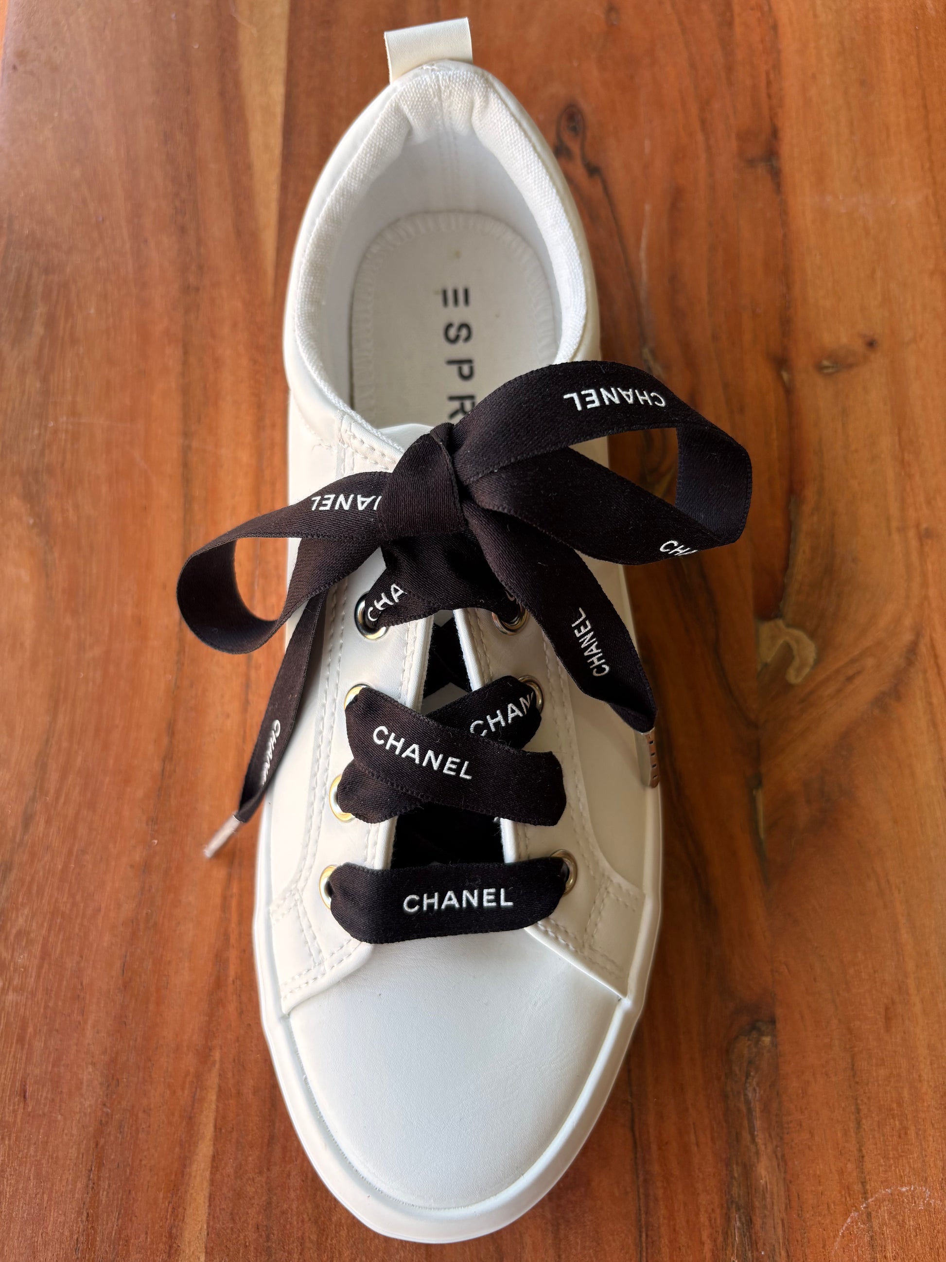 Authentic White Chanel Ribbon with Metal Tips – Upcycled Luxury Shoelaces, Hoodie Strings, or Hair Ribbon