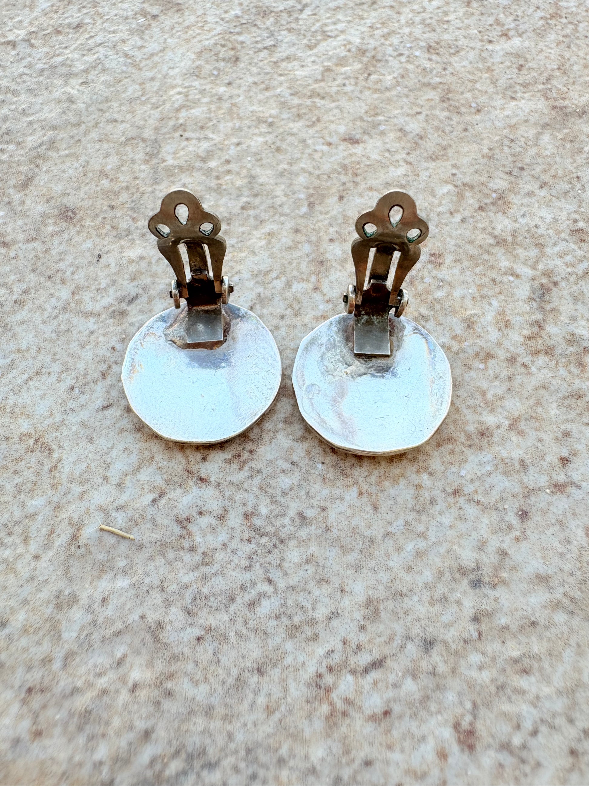 Native American Sterling Silver Inlay Clip-On Earrings | Turquoise & Mother-of-Pearl