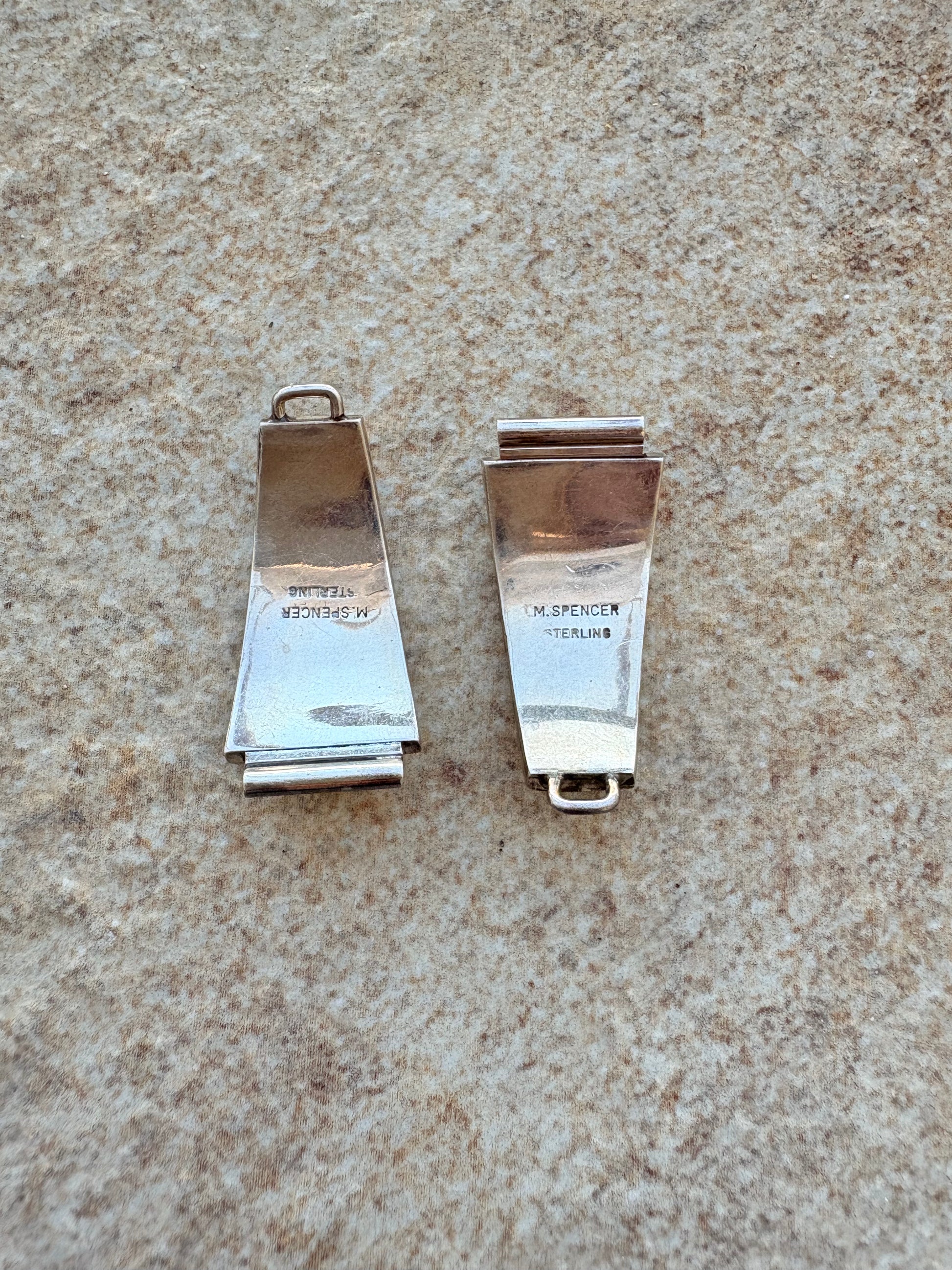Vintage Native American Signed Sterling Silver Watch Bands with Opal Inlay by M. SPENCER