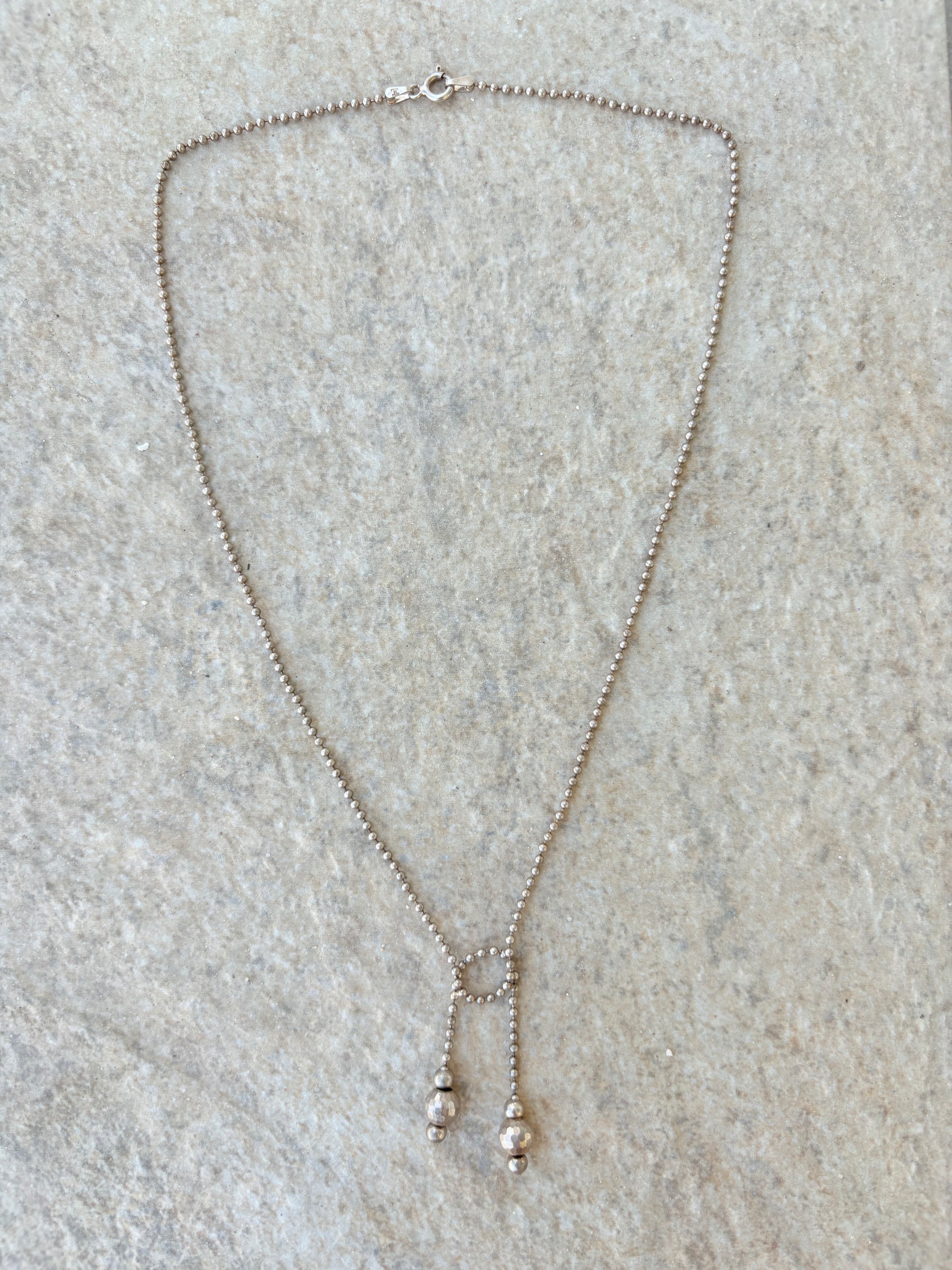 Sterling Silver Beaded Lariat Necklace – Faceted Drop Detail