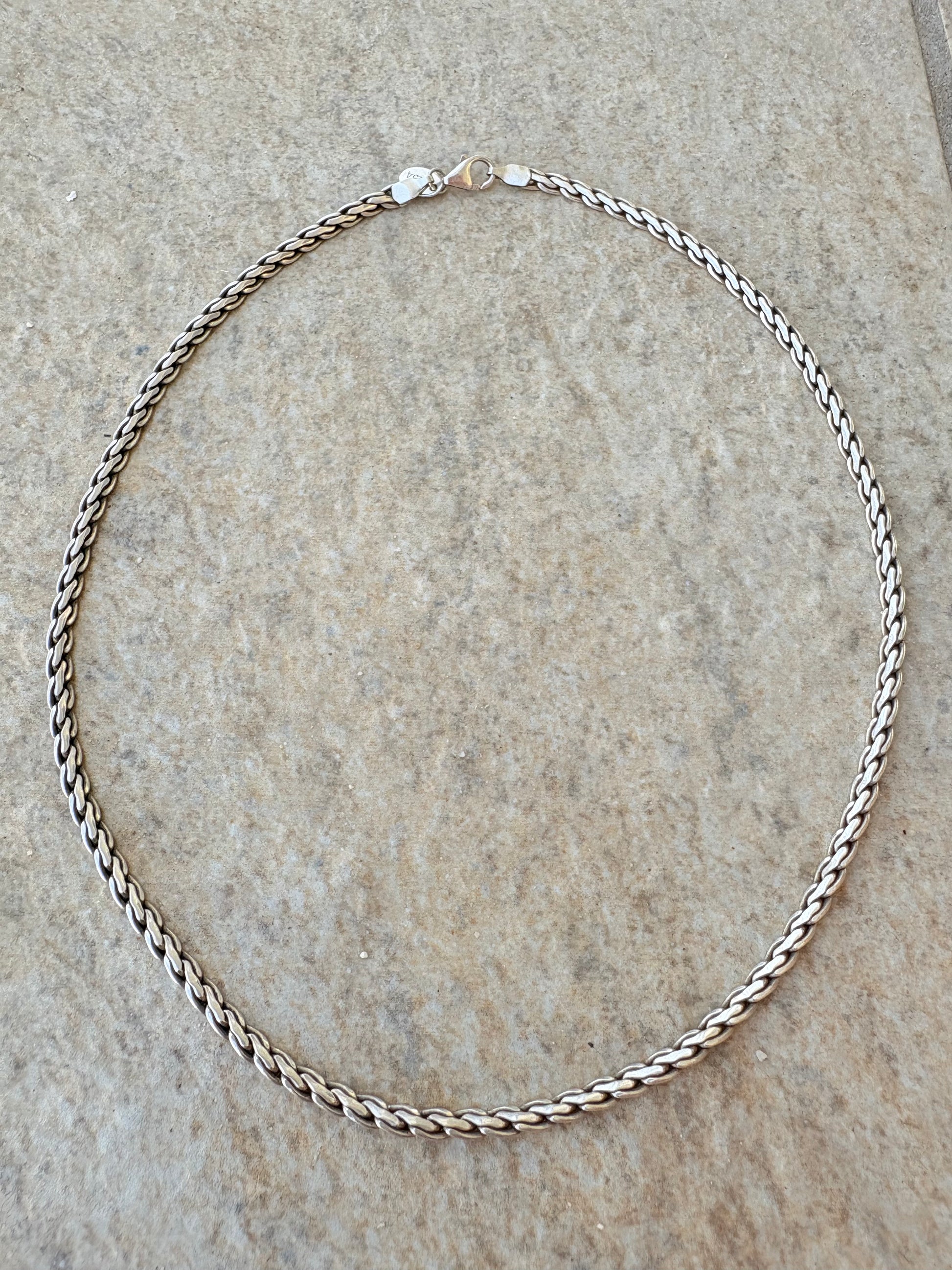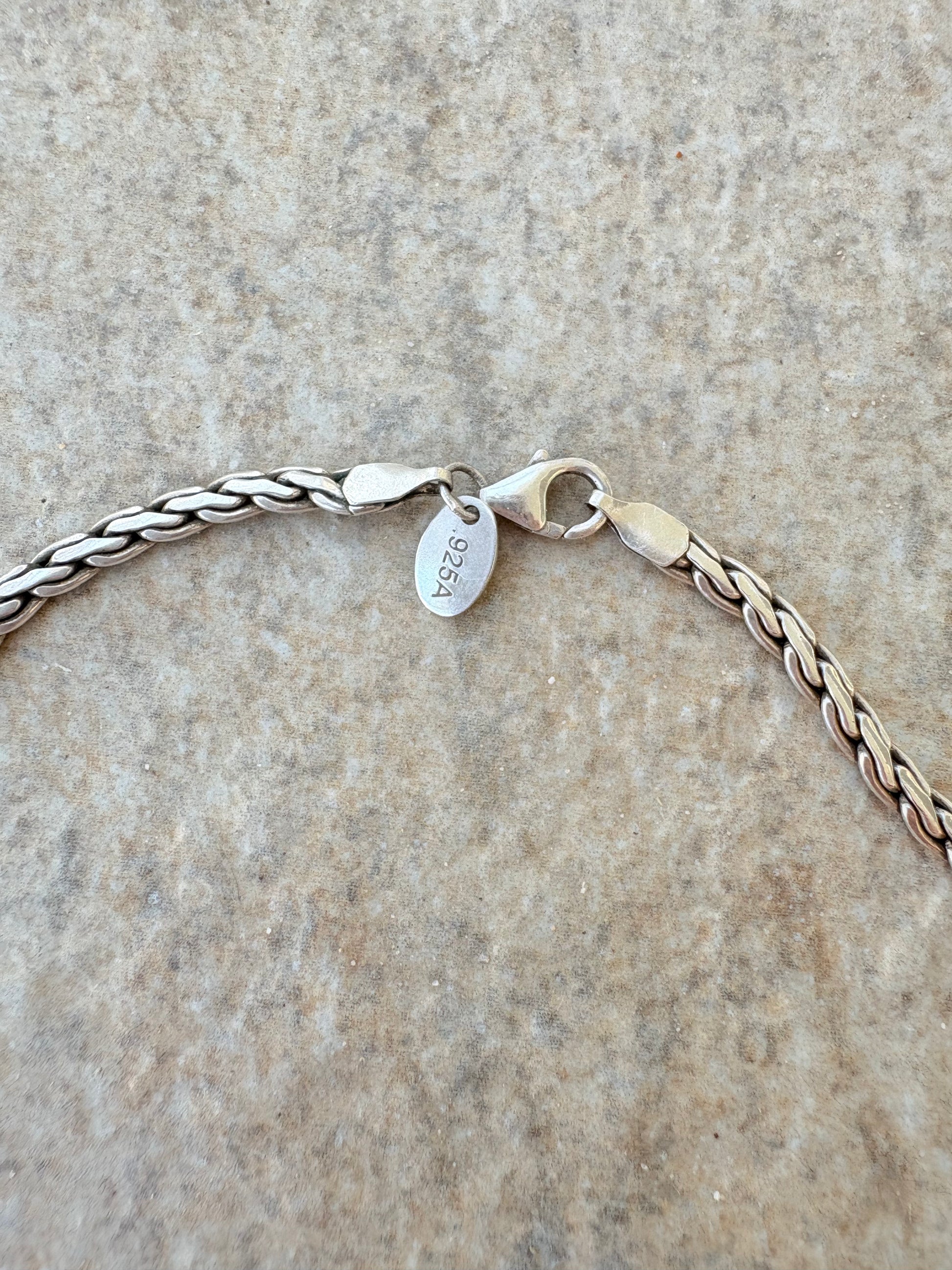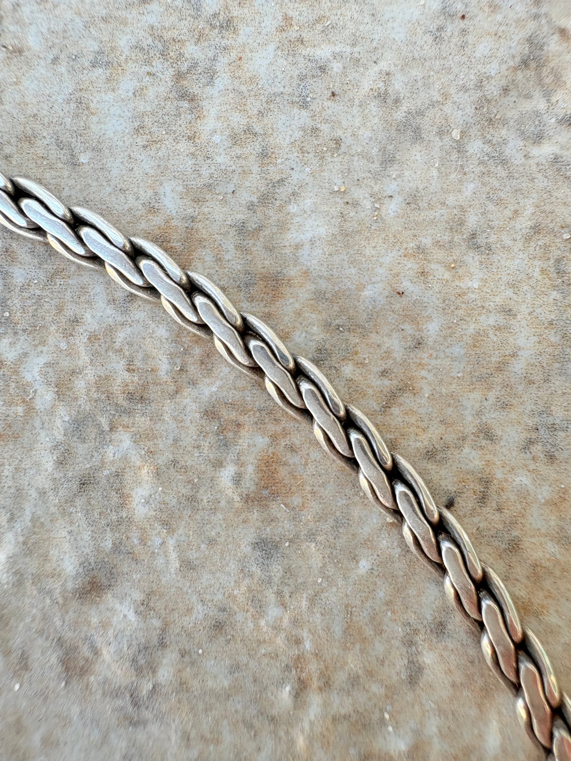 Crafted from solid sterling silver, this vintage chain necklace features bold, interlocking links with a silky-smooth finish and a satisfyingly substantial weight. The design is equal parts rugged and refined — perfect worn solo or stacked with lighter chains for a layered luxe look.