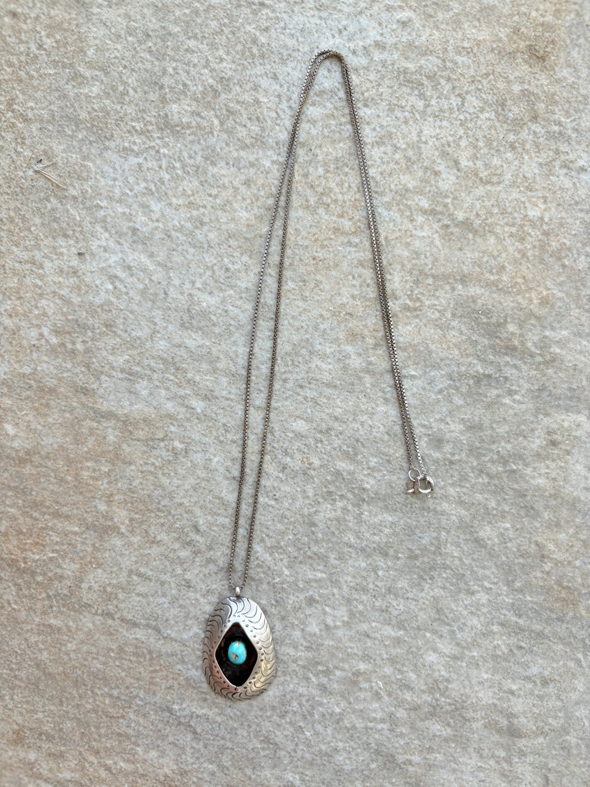 Vintage Navajo Sterling Silver & Turquoise Shadowbox Pendant Necklace